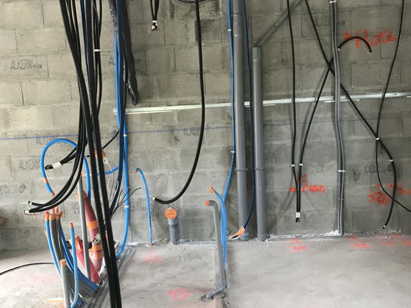 Une fois que le plaquiste a posé ses rails, j’interviens pour passer l’ensemble des gaines et réseaux électriques. C’est une phase essentielle, car elle prépare toute l’installation future.